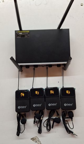 Este set incluye transmisores y receptores inalámbricos para audio. - Frecuencia de trabajo 2.4G ISM con 126 canales. - Alcance de hasta 500m en línea de visión. - Transmisión sin retardo de señal. - Batería recargable de 600mAh. - Indicador LED de estado de carga y conexión.