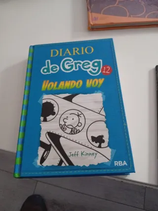 Libro Diario de Greg 12: Volando voy de Jeff Kinney. - Tapa dura azul. - Ilustraciones en blanco y negro. - Edición en español.