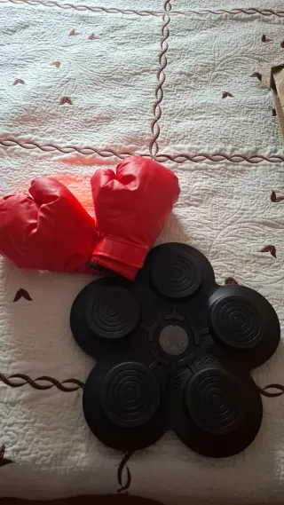 Máquina de boxeo con poco uso. - Diseño circular con cinco puntos de impacto. - Estructura de cartón resistente.