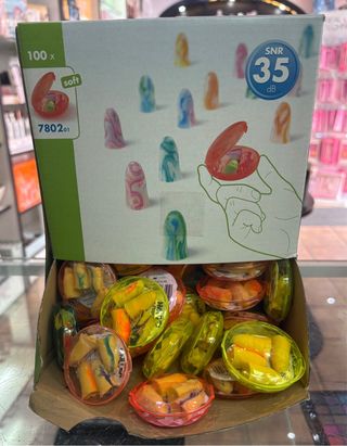 Pack de 100 tapones para oídos suaves con estuche individual. - SNR 35 dB. - Diseño ergonómico y adaptable. - Ideales para dormir o estudiar.