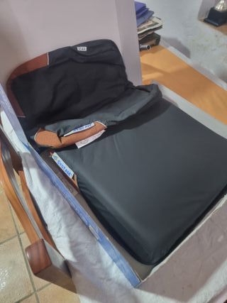 Silla de ruedas ligera y plegable, fabricada en aluminio. Cuenta con respaldo para mayor comodidad. Regalo cojin antiescara, nuevo y cinturon pelvico - Material: Aluminio - Diseño plegable - Respaldo incluido