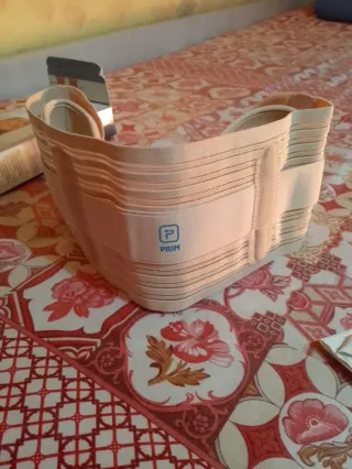 Faja elástica de la marca Prim, diseñada para brindar soporte. - Material elástico y transpirable. - Cierre ajustable. - Color beige.