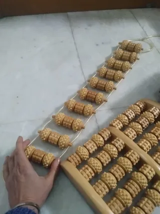 Disfruta de un relajante masaje con este set de rodillos de madera. Nuevo con su caja. El rascador de espalda es grande y el de pies también. - Rodillos de madera para pies. - Rodillo de madera para espalda.