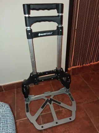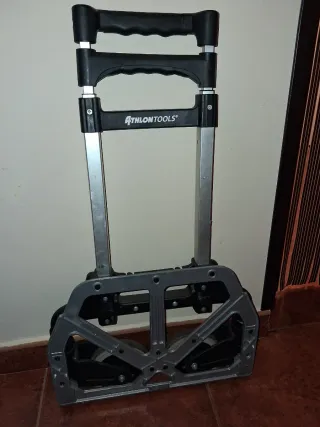 Carro plegable de la marca Athlon Tools, ideal para transportar objetos. 50€. - Estructura de aluminio. - Asas de agarre ergonómicas. - Ruedas para facilitar el desplazamiento. - Hasta 100kg