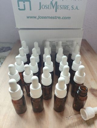 Frascos de vidrio ámbar (topacio) de 10 ml de la marca Jose Mestre. Ideales para aceites esenciales, cosmética, aromaterapia, etc. • Caja de 50 unidades: Nueva y precintada de fábrica. Su precio en tienda es de 53,48 €. • Tengo otro lote de 31 unidades: También nuevos, sobrantes de otra caja. • Características: Todos incluyen tapón cuentagotas blanco, precinto de seguridad y varilla de vidrio. OPCIONES DE COMPRA: • Caja de 50 unidades: 25 € • Lote de 31 unidades: 15,50 € • LOTE COMPLETO (81 unidades): 38 € (La mejor oferta). #frascos #vidrio #ambar #josemestre #aceitesesenciales #cosmetica #aromaterapia #floresdebach #remedios