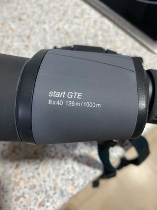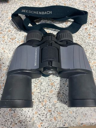 Binoculares de la marca ESCHENBACH start GTE 8x40 126m/1000m. - Diseño en color gris y negro. - Correa y funda de transporte incluida.