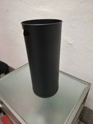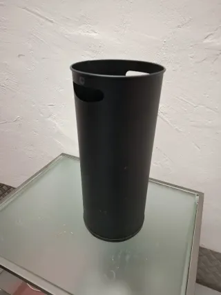 Papelera cilíndrica de color negro. - Material metálico. - Diseño moderno y funcional. - Incorpora dos asas laterales para facilitar su transporte. 50 alto x 22