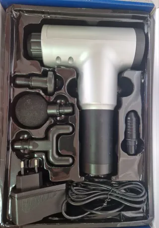 Pistola de masaje muscular para recuperación post-ejercicio. - 6 niveles de vibración de frecuencia variable. - Masaje muscular después del ejercicio. - Ajuste de nivel. - Batería de litio segura y de bajo consumo. - Control de encendido/apagado. - Patente de producto: ZL 2019 3 0193745.8.