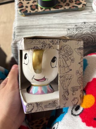 Taza de Chip, el personaje de La Bella y la Bestia de Disney. Presentada en su caja original. - Diseño inspirado en el personaje Chip. - Asa dorada. - Caja con ilustraciones de personajes de Disney.