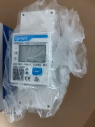 Medidor de energía inteligente monofásico CHNT DDSU666. Nuevo, solo sacado para echarle la foto. Especial para instalaciones de placas solares entre otros - Voltaje: 220-230V - Corriente: 180A - Frecuencia: 50/60Hz - Clase: Cl.1 - Consumo: 800 pkWh