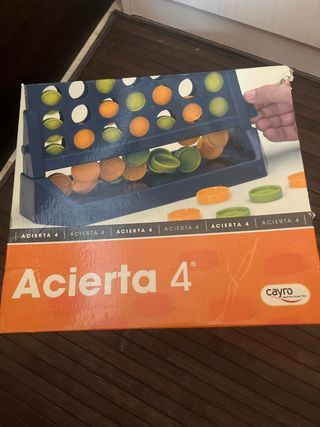 Juego de mesa Acierta 4 en buen estado. Incluye el tablero y las fichas. Es un juego divertido y fácil de aprender, ideal para toda la familia. - Tablero de juego en color azul marino. - Fichas de colores naranja y verde lima. - Juego completo y listo para jugar.