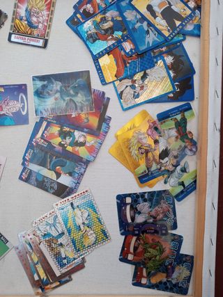 Varias cartas de Dragon Ball Z diferentes colecciones.Están en buen estado, algunas muestran señales de uso. - Incluye 54 cartas. - Temáticas variadas de la serie. - Ideales para coleccionistas.