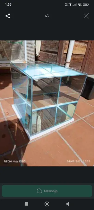 Acuario con forma de cubo, a estrenar y con una capacidad de 64 litros. Ideal para crear tu propio ecosistema. Totalmente nueva. - Diseño moderno y elegante. - Fabricado en cristal de alta calidad. Urna de cristal con forma cúbica y 64 litros de volumen. Medidas: 40x40x40 cm