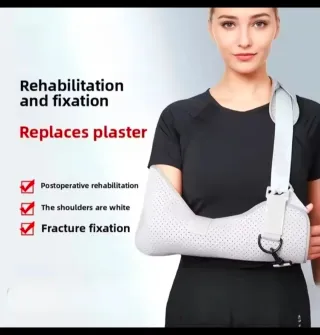 Cabestrillo para inmovilizar el brazo. Diseñado para ofrecer soporte y comodidad. - Material transpirable con perforaciones. - Correa ajustable para el hombro. - Cierre de clip. - Cinturón de sujeción.