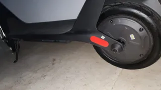 Patinete eléctrico con diseño moderno y funcional. - Rueda trasera con motor integrado. - Reflectores de seguridad en color rojo. - Soporte lateral para aparcar.