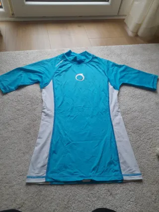 Camiseta de licra con protección solar. - Color azul y blanco. - Protección UVA 50. - Manga larga.