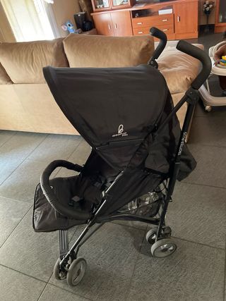 Cochecito de bebé ligero y fácil de manejar, ideal para paseos. Su diseño compacto facilita su transporte y almacenamiento. - Color negro. - Capota. - Arnés de seguridad. - Ruedas delanteras giratorias.