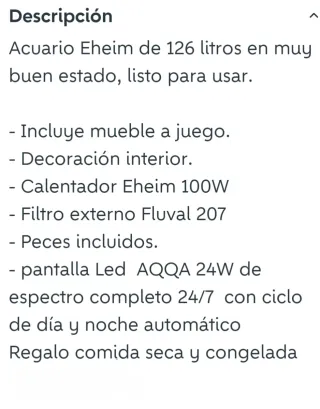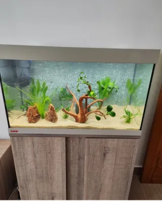 Acuario Eheim de 126 litros, completo con mueble moderno y listo para su instalación. - Incluye filtro externo fluval 207 - Calentador Eheim 100 - Iluminación pantalla LED espectro completo 24/7 automática - Decoración de madera y rocas. - Sustrato de arena. - Peces y plantas - regalo comida seca y congelada además de productos para el mantenimiento y limpieza.