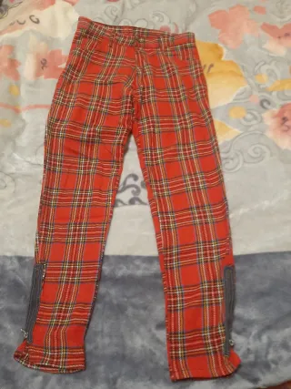 Pantalón de cuadros para con un diseño llamativo. T.42 - Estampado a cuadros en rojo, blanco y amarillo. - Cremalleras decorativas en los bajos. Recoger en Torremolinos.