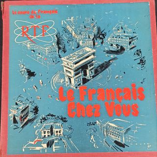 Curso de francés de la RTF. - Ilustraciones de París y el Arco del Triunfo. CAJA CON 6 DISCOS DE VINILO. SONIDO EXCELENTE - Diseño retro y artístico.