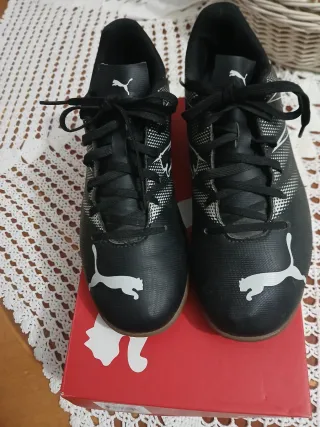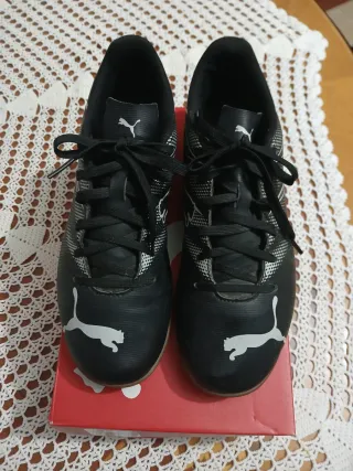 Zapatos deportivos Puma en color negro y blanco, talla 40. - Diseño moderno con logo Puma. - Cordones negros. - Suela de goma.