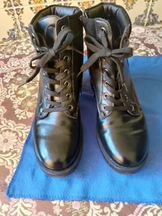 Botas de invierno para mujer en talla 40. Perfectas para mantener los pies calientes y con estilo. - Diseño de caña alta. - Cierre con cordones. - Material sintético brillante.