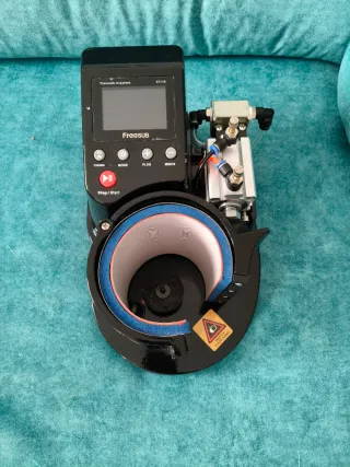 Máquina de sublimación para tazas de la marca Freesub, modelo ST110. Ideal para personalizar tazas con diseños. - Panel de control digital. - Elemento calefactor para tazas. - Conexiones neumáticas. Usada solo dos veces. Se vende por cambio de máquina. Esta NUEVA.