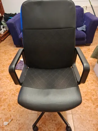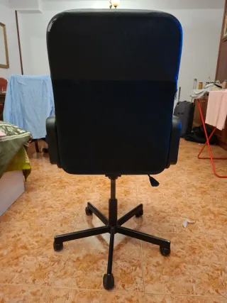 Silla de oficina en color negro, ideal para tu espacio de trabajo o estudio. Se vende por no usar. Un rasguño como se ve en la foto - Diseño ergonómico. - Tapicería de polipiel y tela. - Base con ruedas para fácil movilidad.