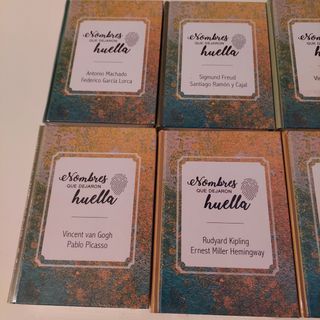 Lote de 8 libros que dejaron huella, todos nuevos y aún en su plástico original. - Nombres que dejaron huella. - Antonio Machado, Federico García Lorca. - Sigmund Freud, Santiago Ramón y Cajal. - Vincent van Gogh, Pablo Picasso. - Rudyard Kipling, Ernest Miller Hemingway. - Winston Churchill, John Fitzgerald Kennedy.