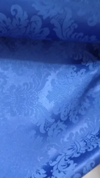 Tela con un diseño elegante.ideal para trajes de ofrenda o época también para tus manualidades . 1.50*1 metro posibilidad de más metros - Color de fondo azul vibrante. - Estampado floral en tono dorado. - Textura con relieve,género no muy grueso con algo de caida de poliéster y seda con un poco de brillo dorado disponible en varios colores Palabras clave dulce retal tapizado chollo chalk Paint tela tejido bonito muebles