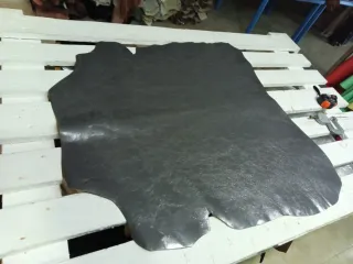 Pieza de piel de vacuno con acabado encerado. El color no sale exacto Medidas 115 de largo y de ancho de 30 a 75 grosor 2 a 2.2 milímetros Es manejable - Material: Piel de vacuno. - Acabado: Encerado.