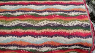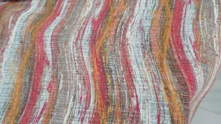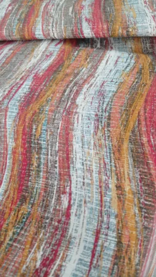 Tejido con un vibrante diseño de ondas en múltiples colores. La textura es rica y detallada, creando un efecto visual dinámico. 2.80*0.50cm posibilidad de más metros Género con cuerpo para tapizar muy bonito tejido en revés de otro color Palabras clave dulce retal tapizado chollo chalk Paint tela tejido bonito muebles