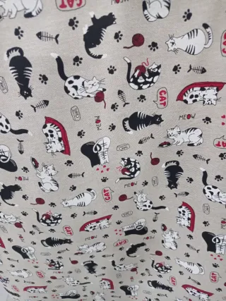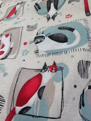 Tejido de loneta con un divertido estampado de gatos. 1.40*1metro posibilidad de medida necesaria preguntar Posibilidad de medida necesaria, preguntar - Diseño original con gatos en diferentes poses. - Ideal para manualidades, decoración o confección. Palabras clave dulce retal tapizado chollo chalk Paint tela tejido bonito muebles