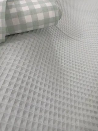 Tejido con textura waffle en color verde agua ideal para tus proyectos de costura o manualidades. 1.50*1 metro posibilidad de medida necesaria preguntar - Material suave al tacto. Palabras clave dulce retal tapizado chollo chalk Paint tela tejido bonito muebles