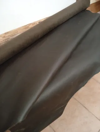 Pieza de forro de piel de cerdo. Es un marrón tirando a un poco verde ,el color no sale igual Lleva algún daño del propio animal Medidas 100x85 Grosor 0.6 Es manejable - Material: Piel de cerdo. - Color: marrón verdoso
