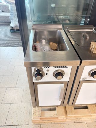 Se vende conjunto de cocina profesional HR, ideal para negocios de hostelería. - Módulos de acero inoxidable. - Diseño moderno y funcional. - Equipamiento de alta calidad. compuesto por: -baño maria gas -freidora electrica -plancha cromoduro -mueble acero con cajones y armario -cocina 4 fuegos gas PRECIO TODO EL CONJUNTO