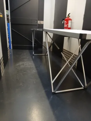 Mesa larga y blanca, ideal para empapelar paredes o como superficie de trabajo extendida. Se pliega para facilitar su almacenamiento. - Superficie blanca lisa. - Estructura metálica. - Se pliega para guardarla