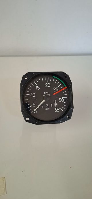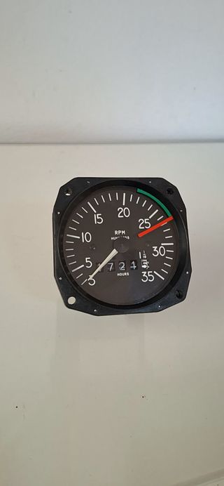Tacómetro analógico de la marca Mitchell para aeronaves. Muestra las revoluciones por minuto (RPM) y las horas de funcionamiento. Se encuentra en bastante buen estado y se ve muy bien, a pesar de tener 17.215 horas de vuelo. - Escala de RPM en cientos. - Indicador de horas de vuelo. - Diseño clásico de panel de instrumentos Solo es para decoración. Es un elemento no serviciable y no se puede utilizar. Tengo más instrumentos similares en mi perfil. Instrumento de vuelo, avion, cessna, decoración avion, panel avion, instrumentos Aeronave