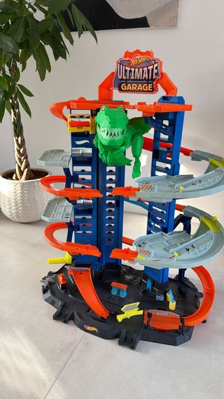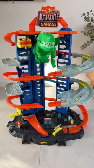 ¡El set de juego Hot Wheels Ultimate Garage es una torre de diversión sin fin! - Incluye un garaje de varios niveles. - Cuenta con rampas y pistas. - Incorpora un dinosaurio. - Compatible con coches Hot Wheels.