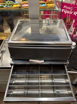 Balanza digital de acero inoxidable con plato. Pantalla digital. Plato de acero inoxidable. Tiquet impreso. Varios vendedores. Negocio de pescadería, frutería, tienda, alimentación.