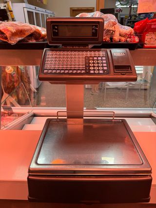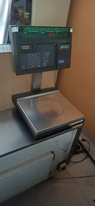 Balanza digital marca Ariso, ideal para pesar alimentos. - Pantalla digital con visor de peso, precio/kg y precio total. - Teclado numérico para introducir precios. - Impresora de tickets integrada.