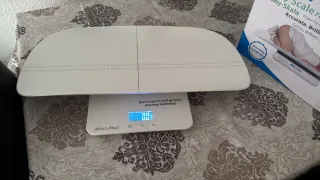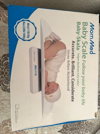 Balanza digital MomMed para bebés. Permite un seguimiento preciso del peso. - Rango de peso: 50g a 100kg (0.11lb a 220lb). - Pantalla digital clara. - Diseño compacto y fácil de usar.