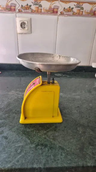 Balanza mecánica de la marca DINA, ideal para coleccionistas o para uso decorativo. - Diseño vintage. - Esfera redonda con dial. - Base metálica.