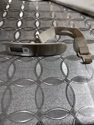 Práctica balanza digital para pesar tu equipaje antes de viajar. Su diseño compacto la hace fácil de llevar. - Pantalla LCD. - Correa de sujeción. - Gancho metálico.