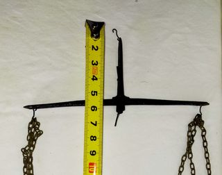 Balanza romana antigua de metal, ideal para coleccionistas o decoración. - Estructura robusta de hierro. - Gancho superior para colgar. - Brazos con ganchos para pesar.