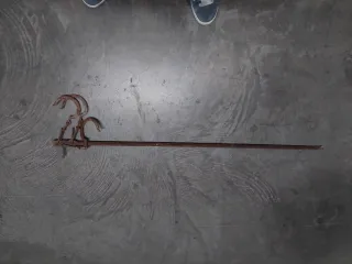 Balanza antigua de tipo romana, fabricada en metal. Ideal para coleccionistas o decoración. - Construcción robusta en hierro. - Diseño clásico con gancho superior y dos ganchos inferiores. - Barra de pesaje con contrapeso.