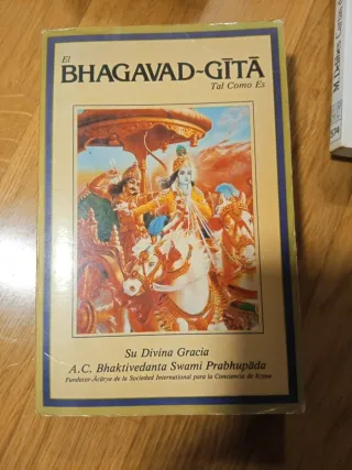 Libro El Bhagavad-Gita Tal Como Es de A.C. Bhaktivedanta Swami Prabhupada. - Edición en español, con ilustraciones a color - Incluye la obra Su Divina Gracia. - Fundador-Acarya de la Sociedad Internacional para la Conciencia de Krishna.