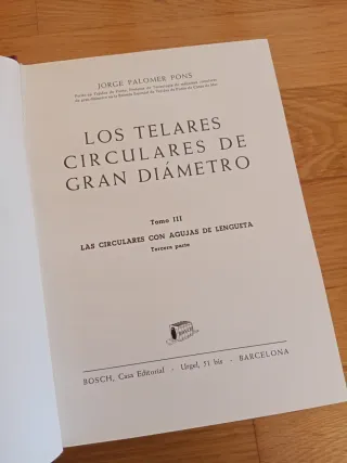 Libro técnico sobre Los Telares Circulares de Gran Diámetro escrito por J. Palomer Pons. - Cubierta en tela de color granate. - con ilustracciones de fotografía y gráficos - 400 págs., de tecnología textil