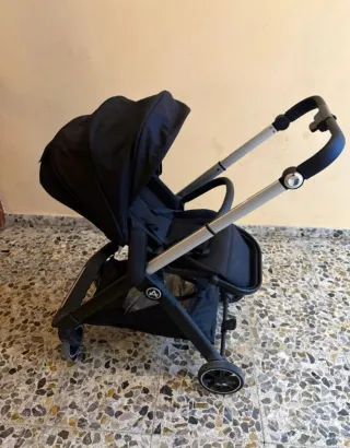 Carrito de bebé en color negro, con un diseño moderno y funcional. - Estructura ligera y resistente. - Capota extensible. - Ruedas todoterreno. - Cesta de almacenamiento. - Plegado compacto.