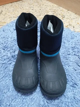 Botas de agua para niños, perfectas para días lluviosos o para jugar al aire libre. - Color negro con detalles azules. - Suela de goma antideslizante. - Interior forrado para mayor comodidad. Talla:28/29